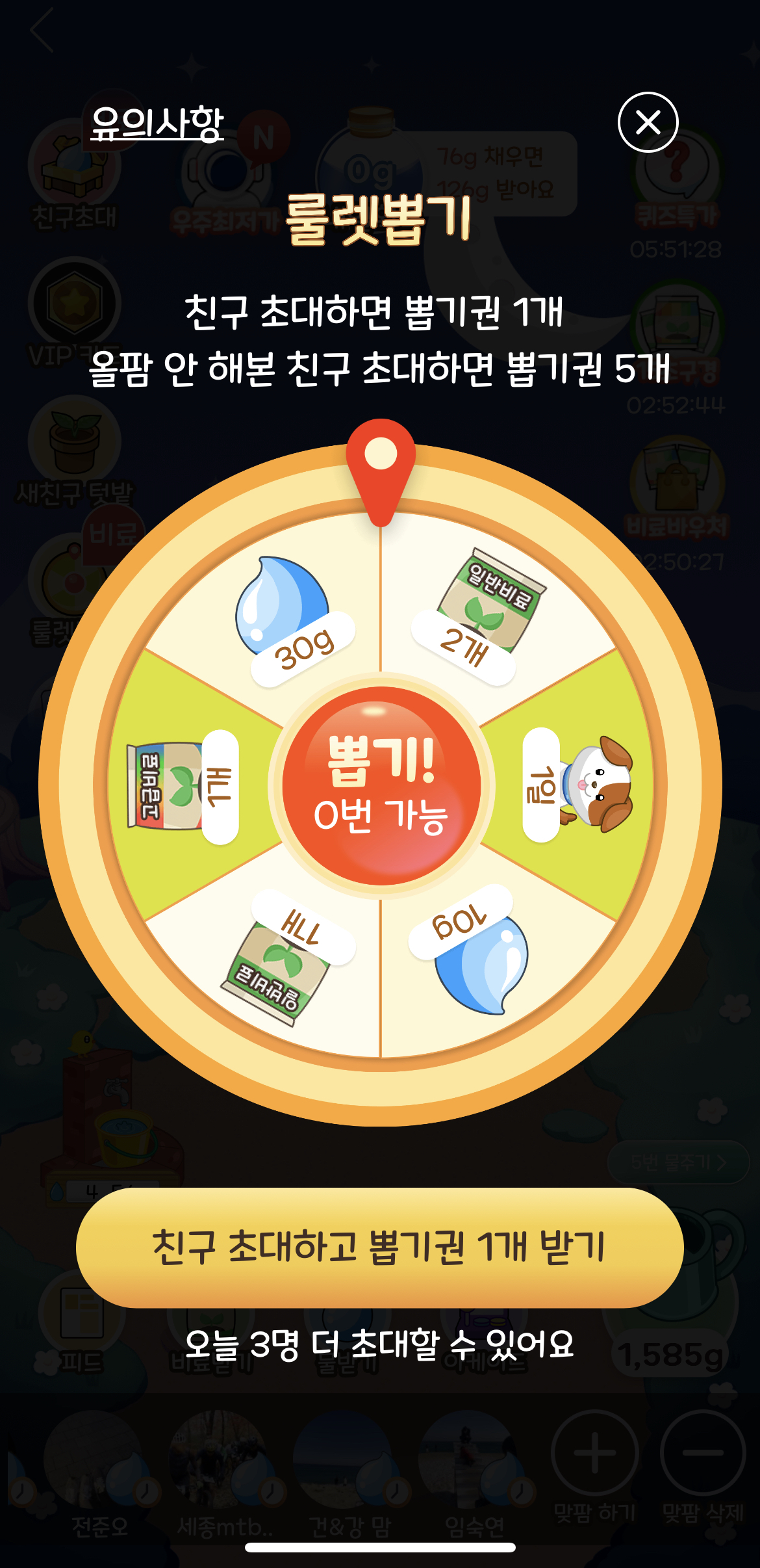 친구초대와 룰렛뽑기