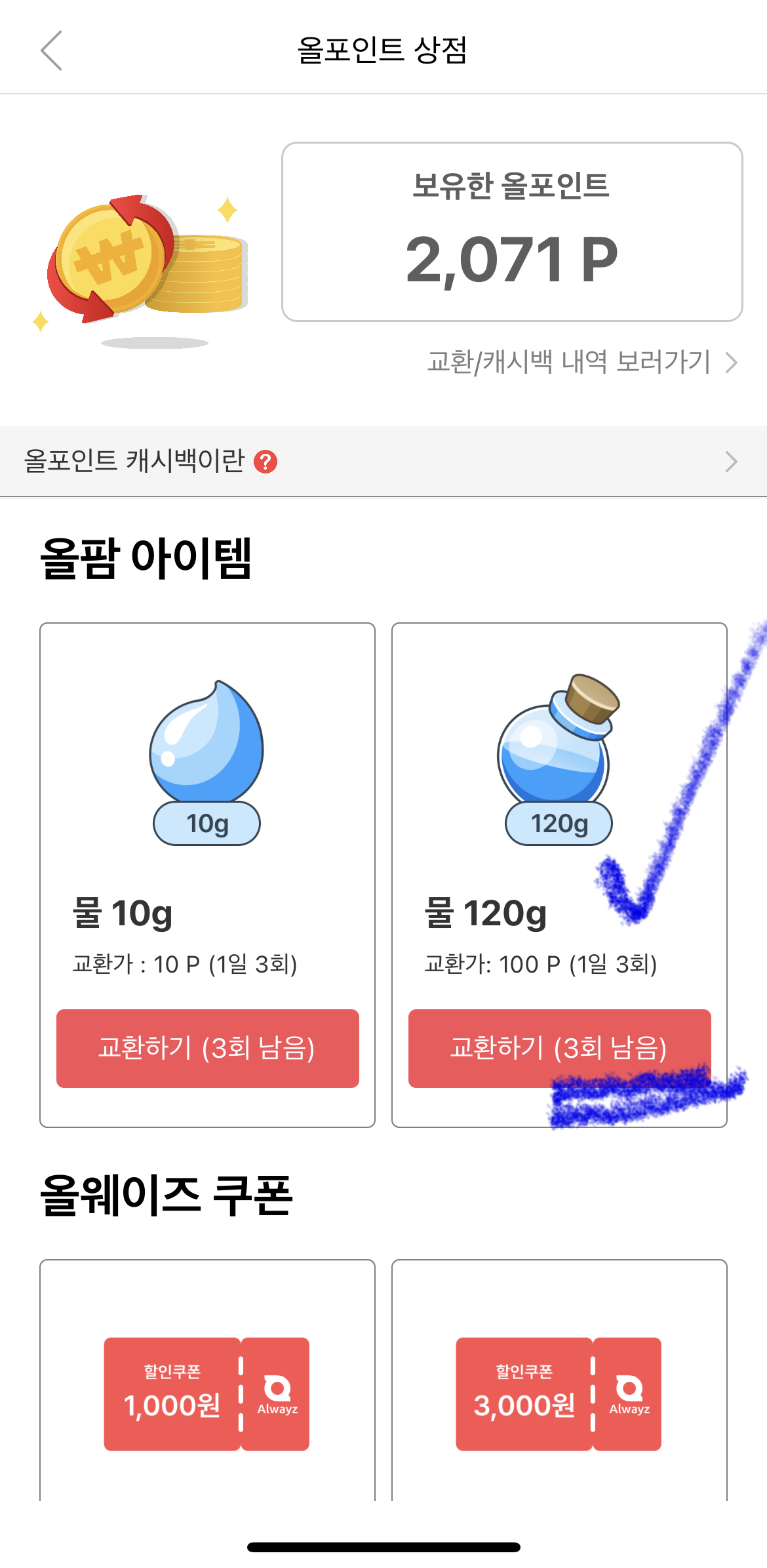 포인트로 물 구매하기