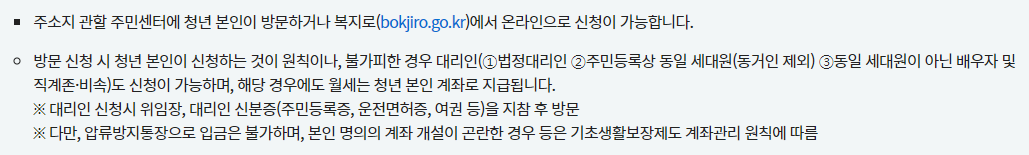 • 소득 - 원가구(부모님 가구) 중위소득 100% 이하 및 청년독립가구 중위소득 60% 이하