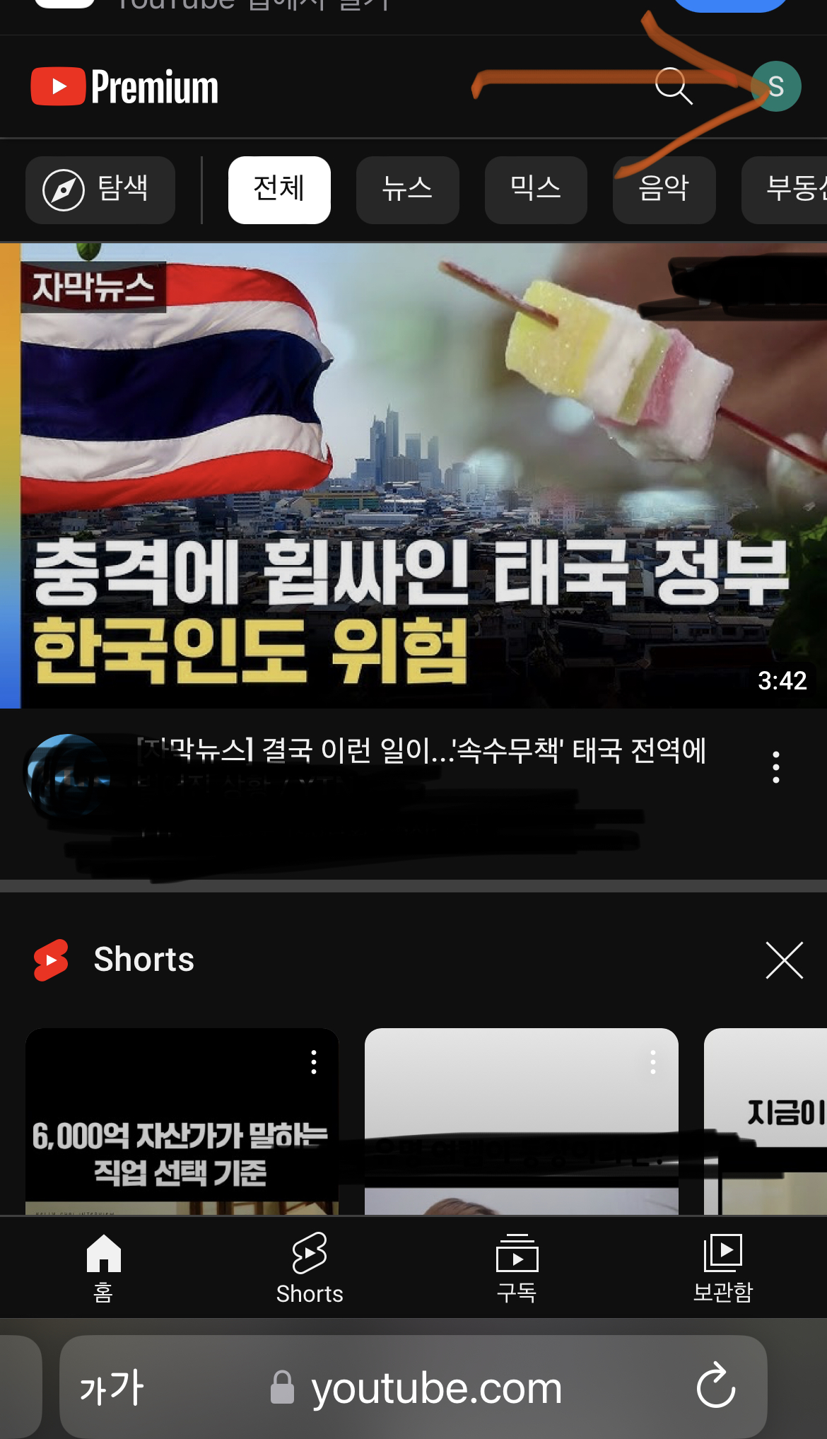 저는 이미 결제를 완료한 상태이기 때문에 구매항목 및 멤버십이라고 떠있는 것이고 멤버십이 만료되어 있으신 분들은Youtube premium 멤버십 가입이 떠있을 겁니다.
