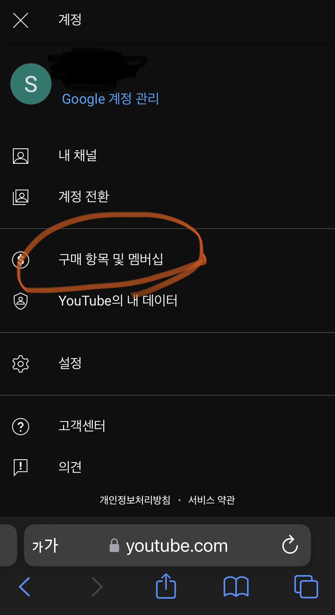 @@@앱으로 들어가시면 안됩니다!!!@@@ 아래와 같이 계정 설정 - 멤버십에 들어갑니다.
