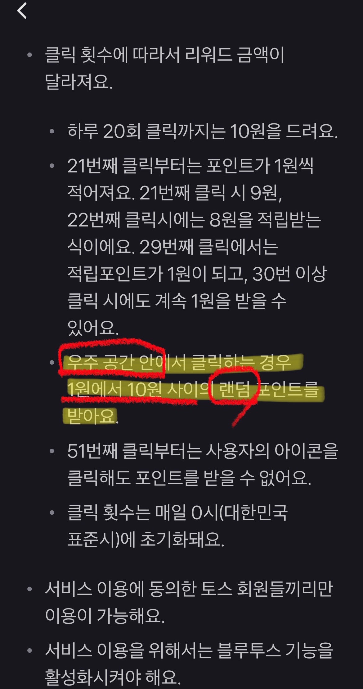 토스에서 우주 켜기로 인해 자금이 많이 빠져나가 포인트 지급방식을 바꿨습니다.