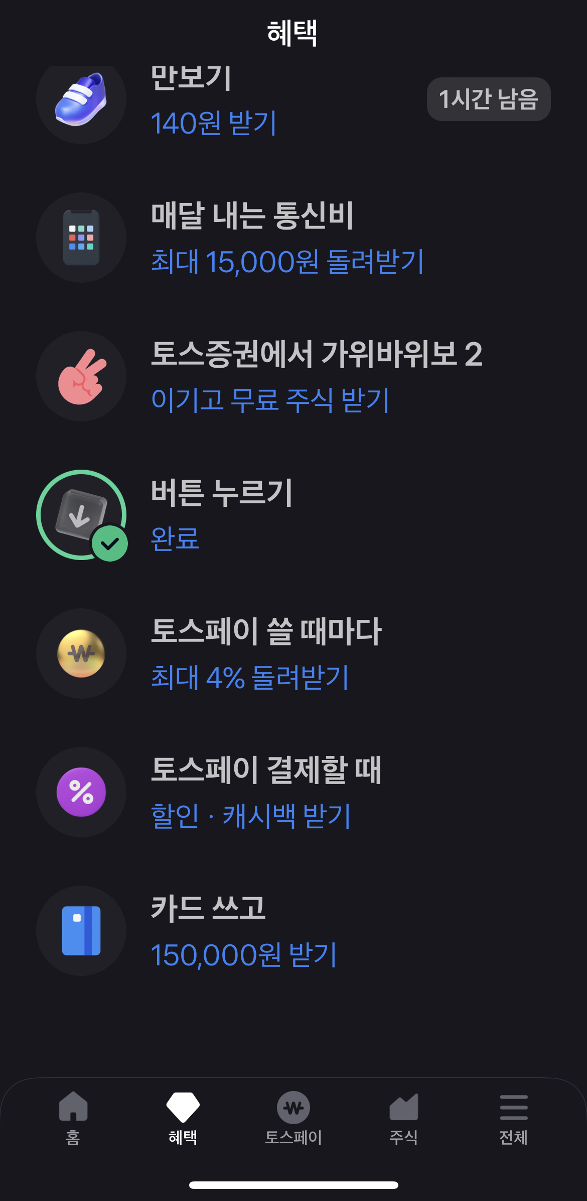 토스 우주켜기로 매일 266원 받자!