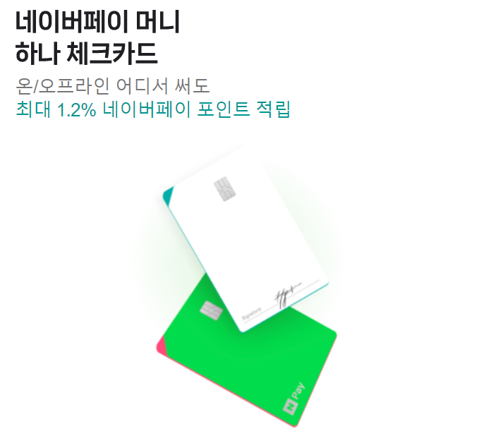 네이버에서 카드도 함께 출시했는데 이 것도 혜택이 좋은 것 같습니다. 연회비가 없는 카드여서 쉽게 가입할 수 있습니다. 모든 가맹점에서 1.2%의 네이버 페이 포인트를 적립해주기 때문에 장점이라고 할 수 있습니다. 게다가 적립한도가 올해까지는 3만 포인트로 높기 때문에 단기간 사용하기에도 적합합니다. 이 좋은 혜택을 그냥 주지는 않겠죠?