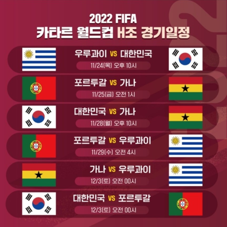H조 : 대한민국, 포르투갈, 가나, 우루과이