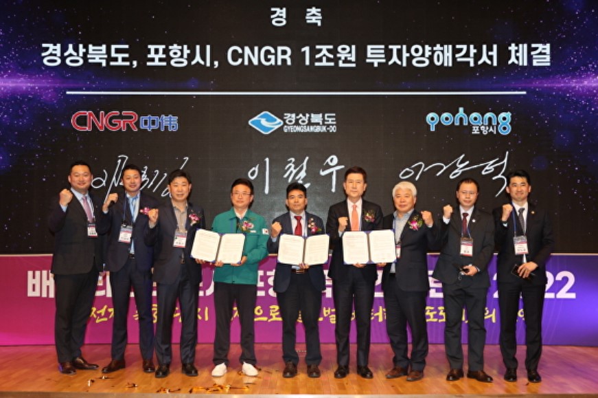CNGR은 2030년까지 포항 영일만 4일반산업단지 41만m2에 2차전지 소재 생산을 위한 공장을 건립하기로 했습니다. 전구체는 총 연산 10만t과 황산니켈은 25만t을 생산할 예정입니다.
